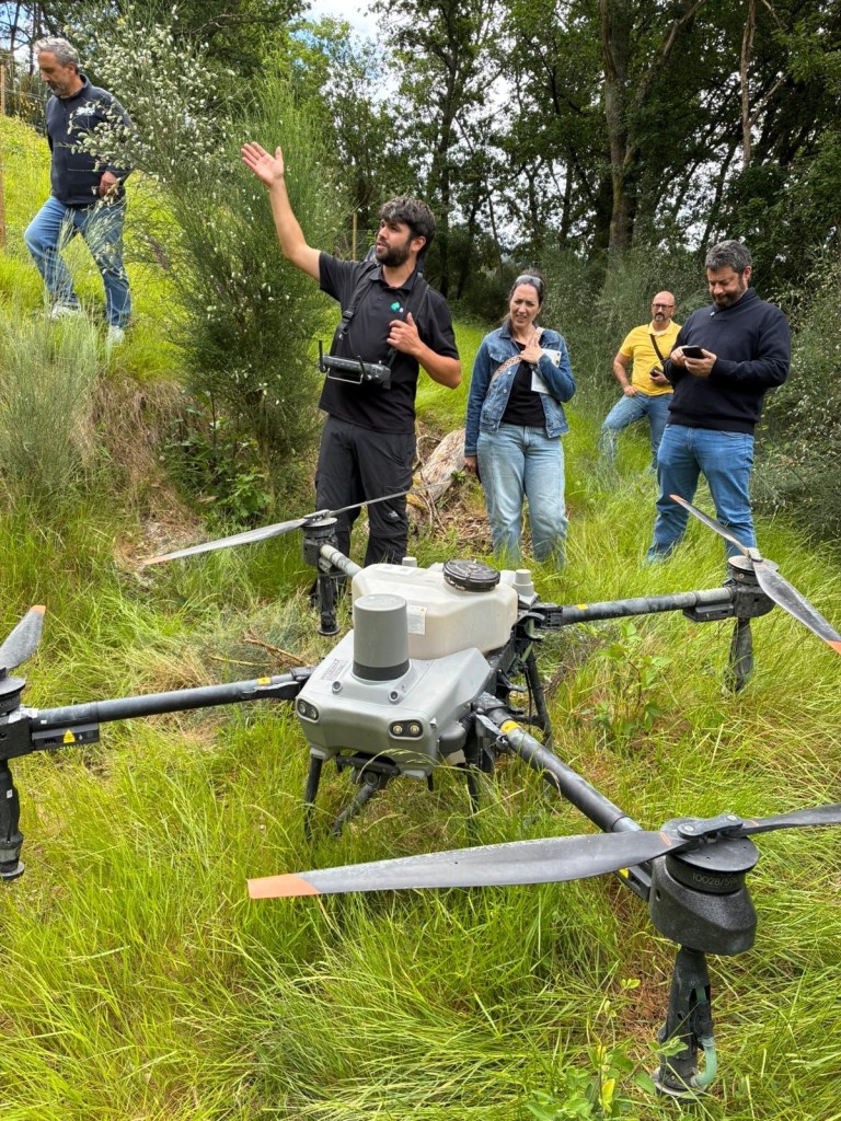 SAMOS. El monte de Renche, en Samos, fue escenario este jueves de una innovadora demostración sobre la aplicación de bioestimulantes mediante drones para el tratamiento de castaños. La jornada, organizada por la Asociación Galega das Castañas y dos Soutos en colaboración con la vicepresidencia de la Diputación, reunió a expertos del sector agroforestal y mostró el potencial de las nuevas tecnologías en la gestión sostenible de los soutos gallegos.