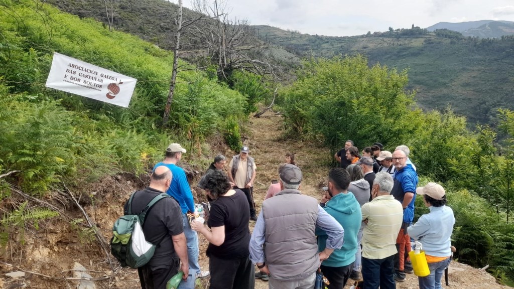 A intención dos membros da Asociación Galega das Castañas e os Soutos é que os castiñeiros volvan formar parte da paisaxe do Courel. Así o explica José Antonio Flores, membro deste colectivo: «O que intentamos é recuperar un souto que ardeu nos incendios que asolaron esta zona no ano 2022. Imos recuperalo enxertándoo. É tamén unha xornada reivindicativa porque os soutos tradicionais están desaparecendo de Galicia e desde a nosa asociación fomentamos tanto as novas plantacións coma a recuperación dos soutos vellos».